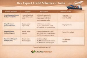 By improving liquidity, reducing finance costs, supporting new exporters, and increasing MSME participation, rapid export credit schemes play a crucial role in India’s export growth. These initiatives help exporters remain competitive despite global uncertainties and rising operational costs. When exporters are financially secure, they can focus on innovation, quality improvement, and market expansion. With responsible exporters like Cinexim Agro LLP aligning their operations with these schemes, India’s export ecosystem becomes more resilient, inclusive, and future-ready.
